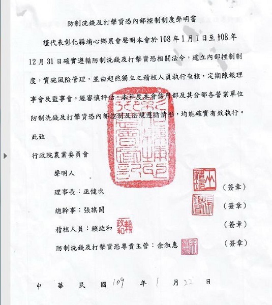 108年防制洗錢及打擊資恐內部控制制度聲明
