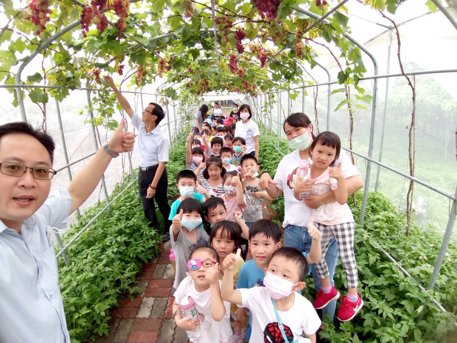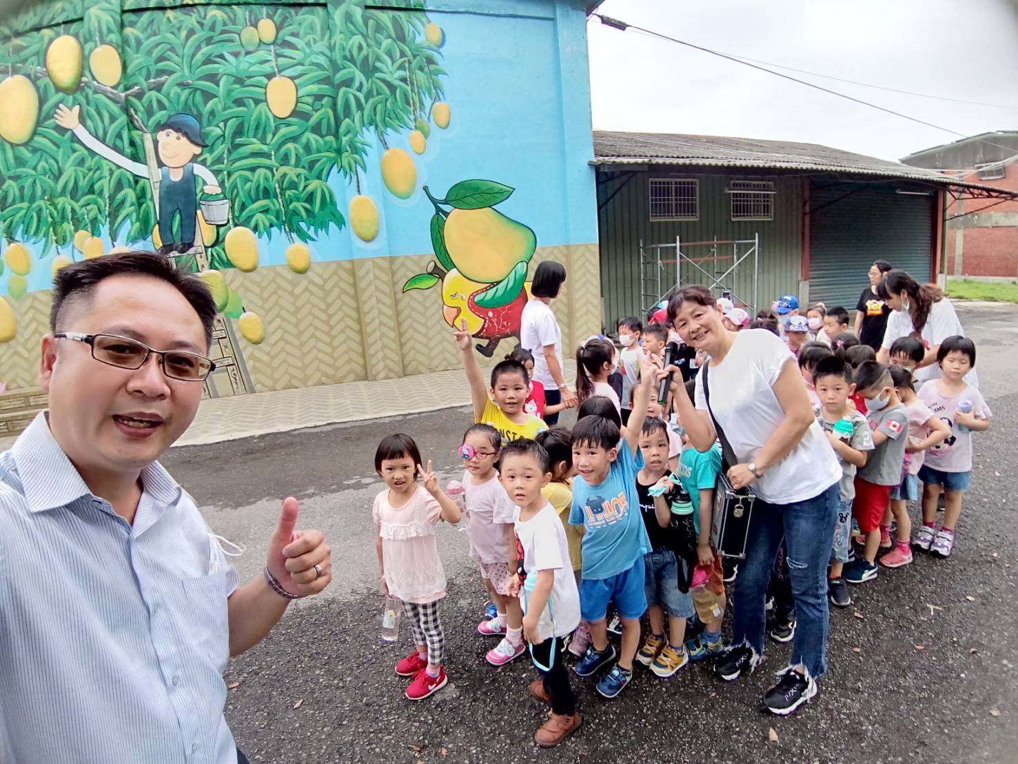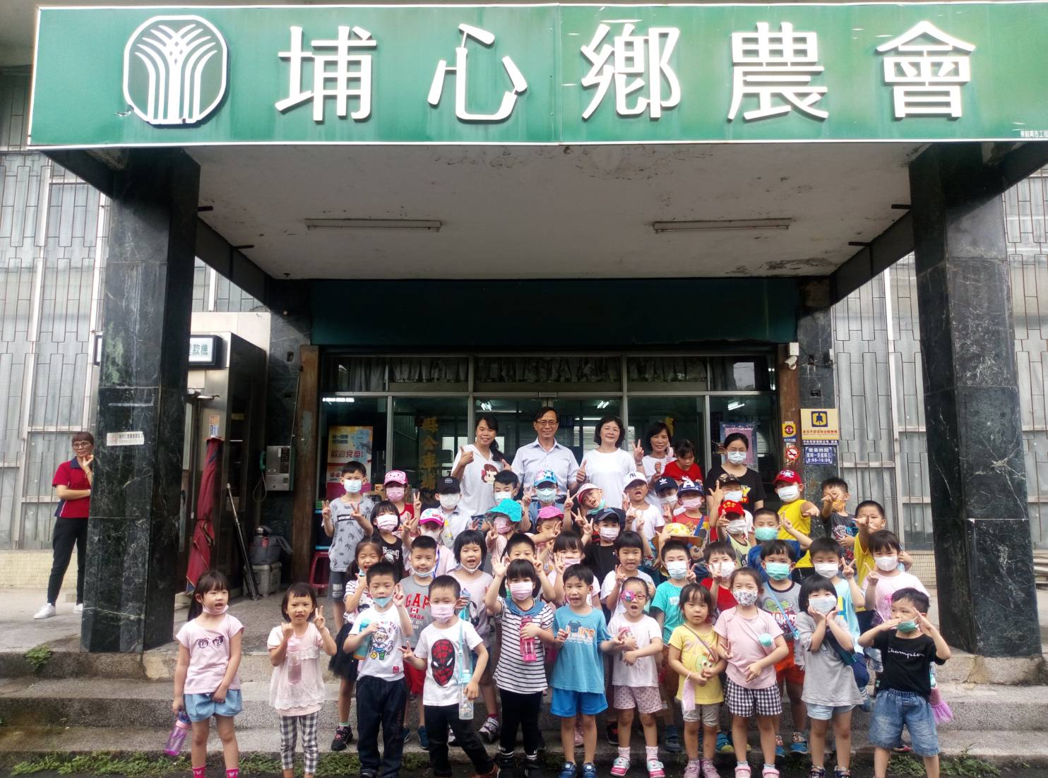 前自拍,個個精神抖擻的小朋友們也在農會大門與埔心鄉農會張總幹事合影留念。