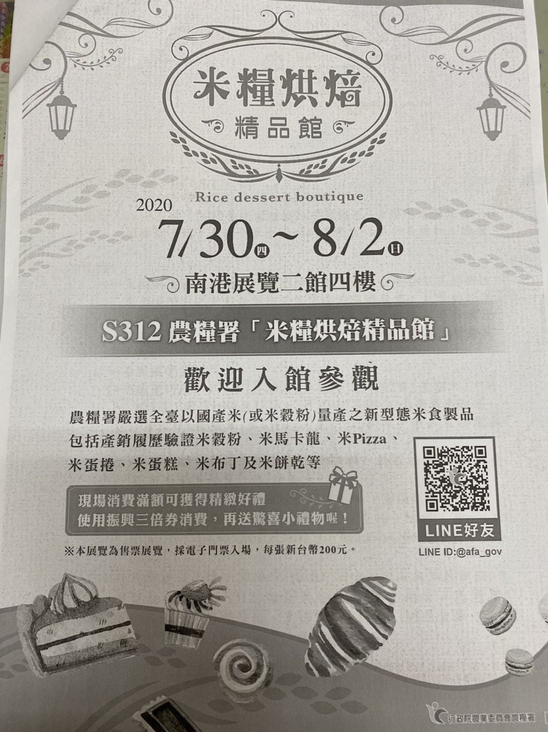 【轉農糧署公告】2020年米糧烘培精品館展覽