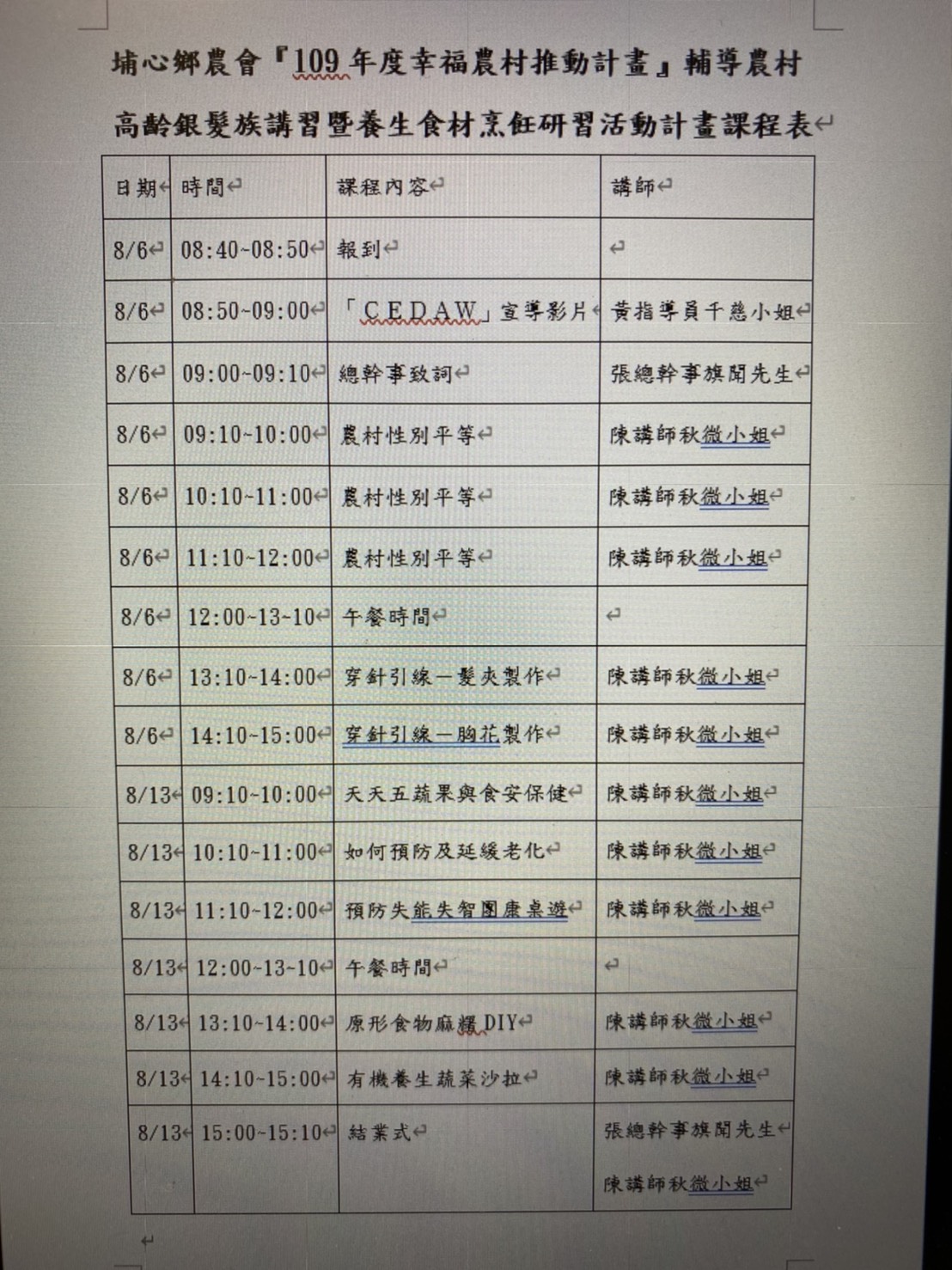 為培養農村高齡者(65歲以上)經營人生黃昏生涯之規畫,透過養生食材烹飪及手作實習活動訓練其手腦並用,本農會推廣部於