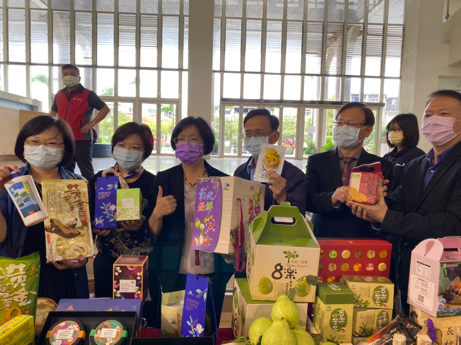 ,本會張總幹事當日也到場參加,並於農產品專區設置展售本會 #金蜜芒果系列產品。記者會過後,王縣長帶著記者朋友們現場巡禮,也特別讚賞本會
