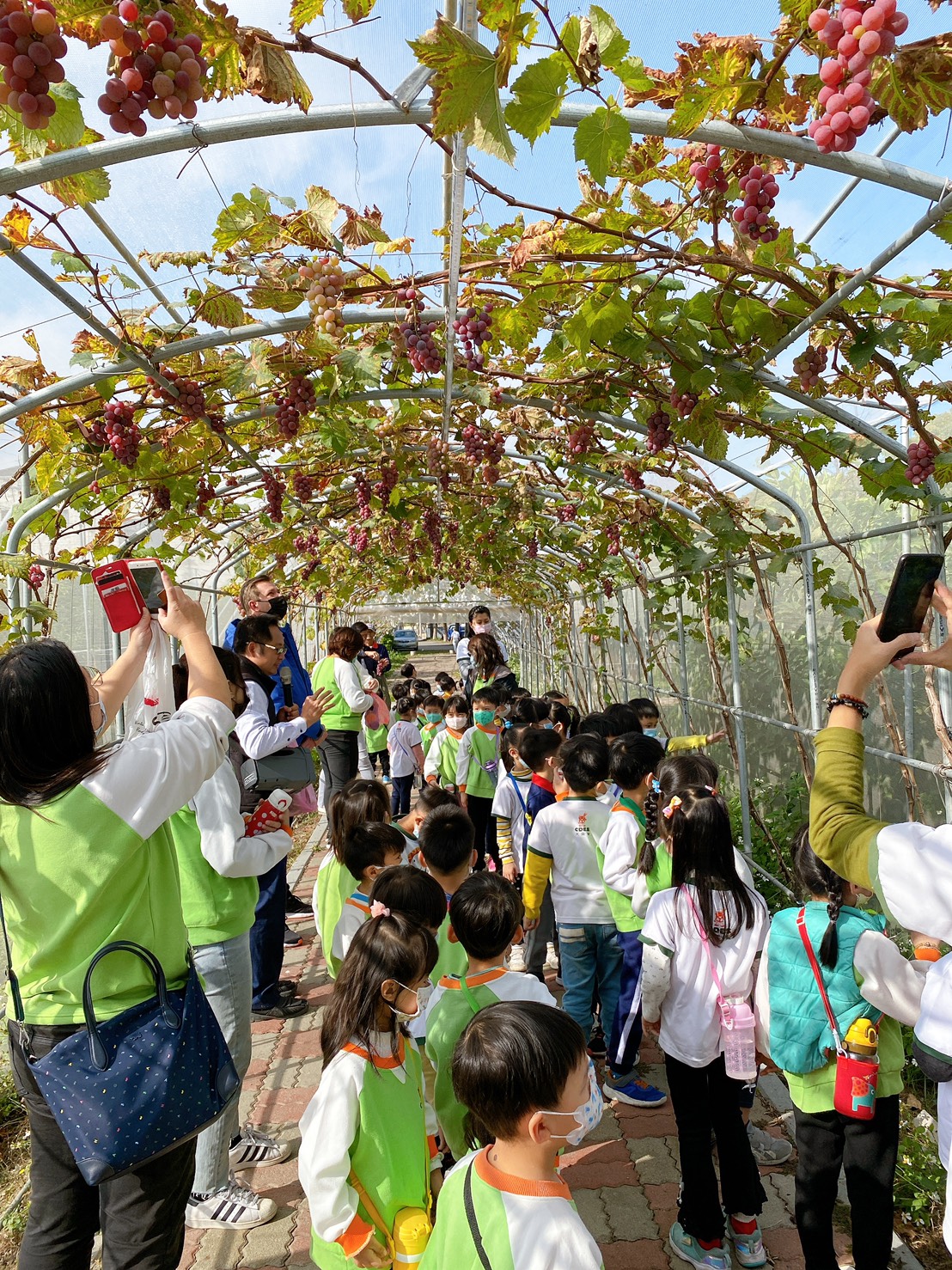 大衛營幼兒園老師群與可愛的孩子們於1月5號(週二)前來參訪埔心鄉農會,由會務部同仁帶領參觀目前正處盛產期的【葡萄隧道】介紹本鄉主打的三蜜水果,本會導覽同仁也分享農會吉祥物的故事【夏天忙忙鳥傳說】以及【金蜜芒果小知識】小朋友們反應熱烈,踴躍舉手發言,非常可愛!期待下次能再與你們相會
