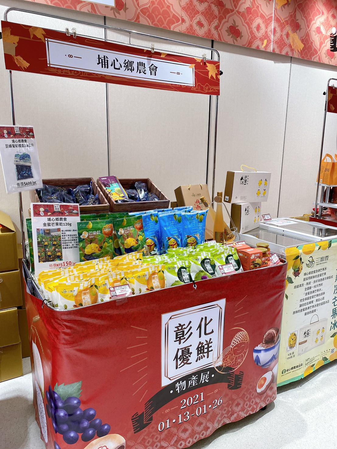 彰化展期間,嚴選商品有特價活動,歡迎有在北部的民眾朋友們,可前往信義大遠百一遊彰化好物,馬上能品嚐埔心鄉金蜜芒果相關產品的好滋味呦