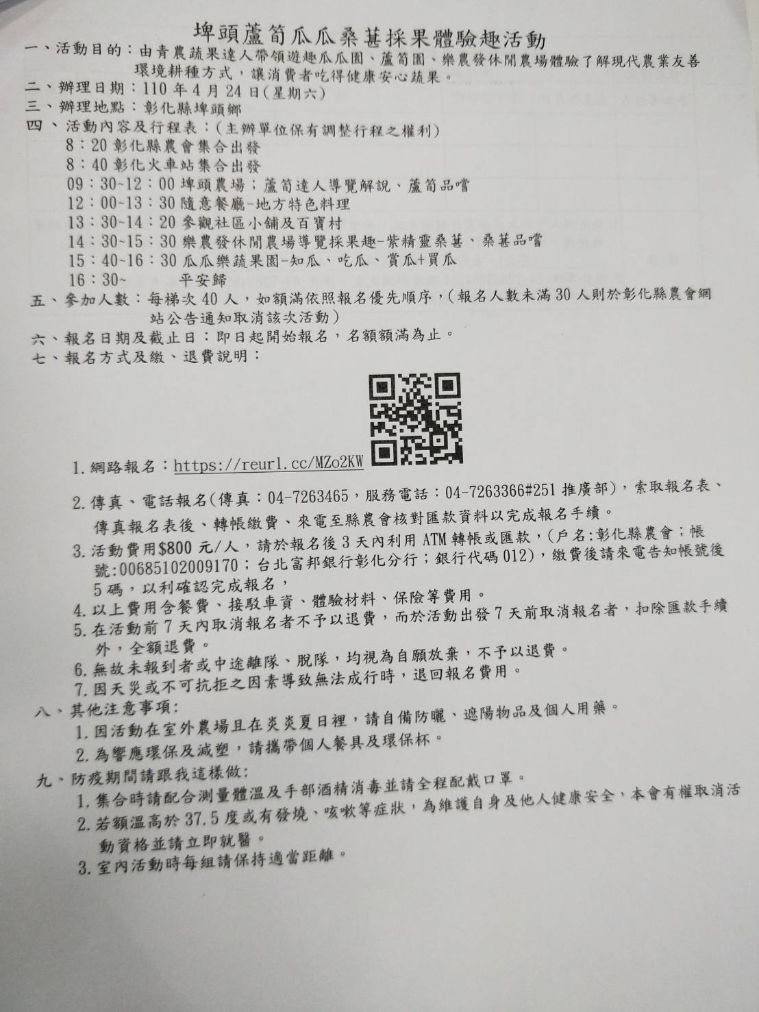 【推廣部公告】好康活動訊息-埤頭蘆筍瓜瓜桑葚採果體驗活動