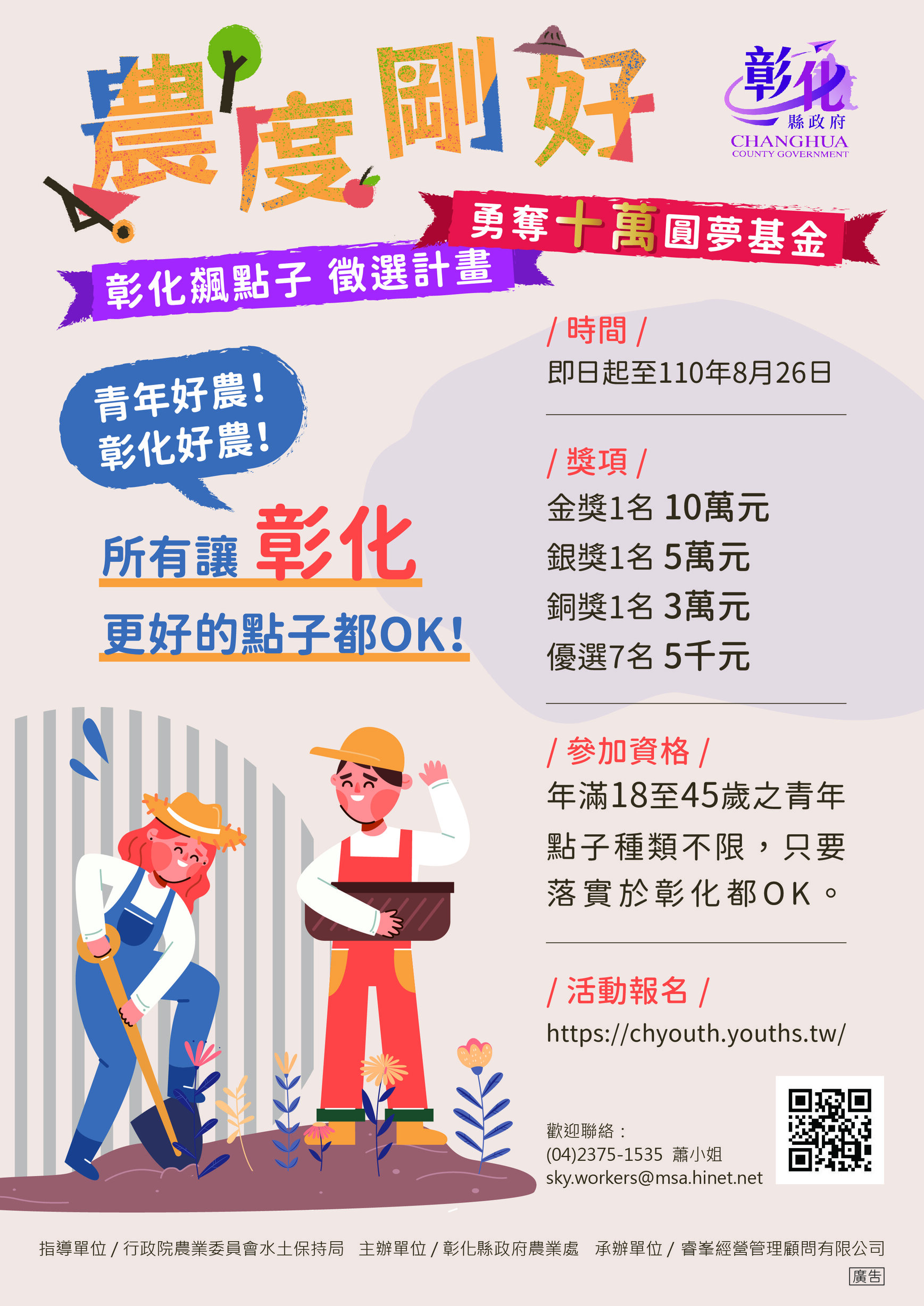 【推廣部公告】彰化縣政府-青年好農彰化飆點子徵選計畫-