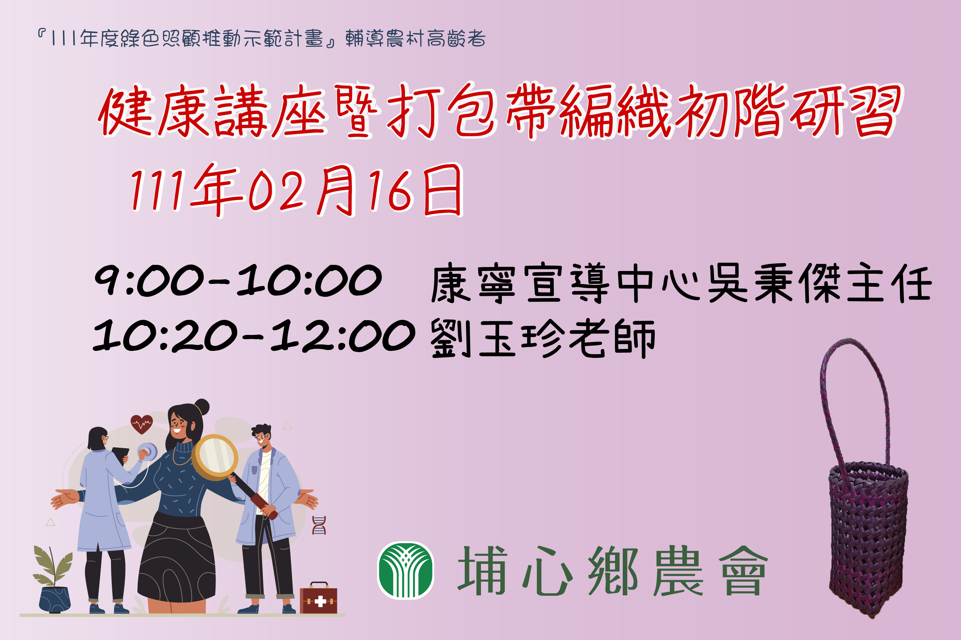 ◾️心農專欄◾️家政班活動:2/16健康講座暨編織初階研習