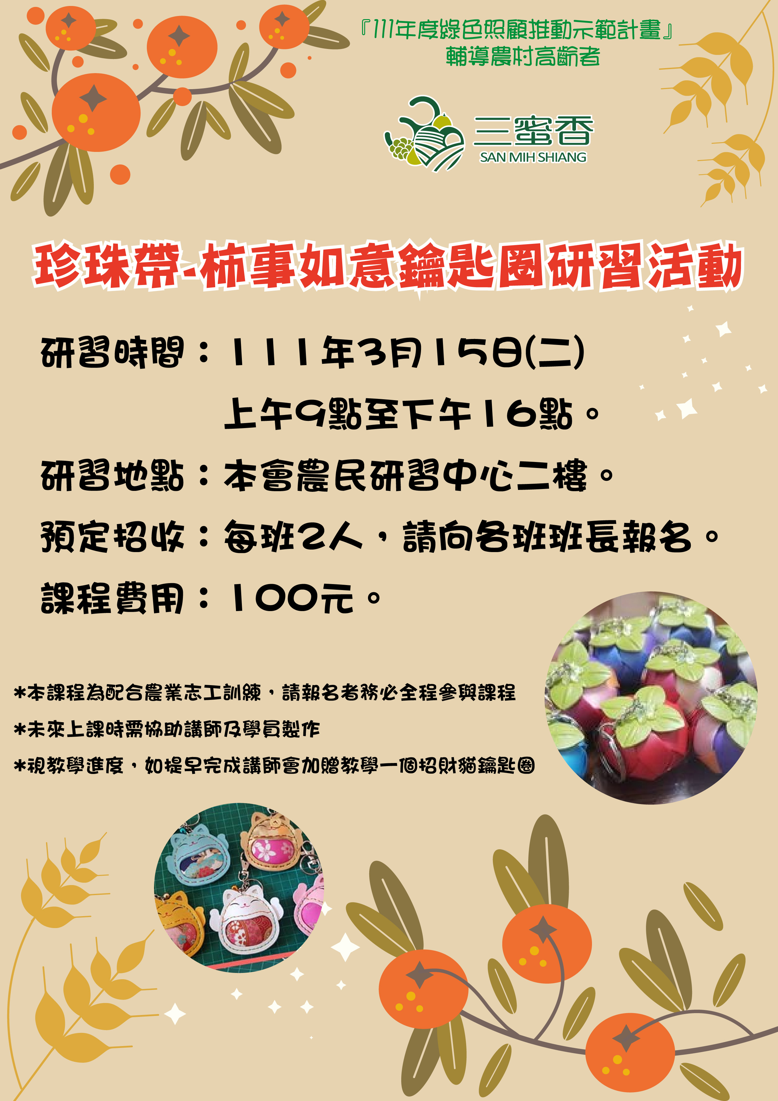 《心農專欄》家政班活動:3/15柿事如意鑰匙圈研習活動