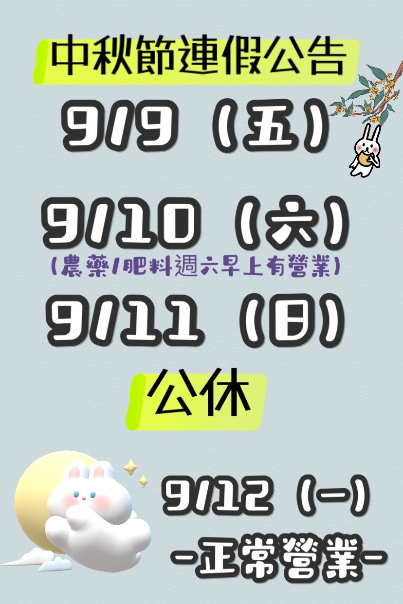 【 中 秋 節 連 假 公 告 】