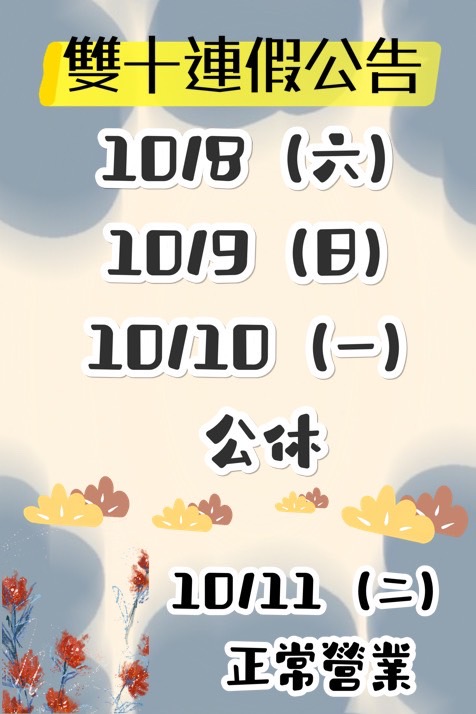 ◾️公告 - 10/8 - 10/10 雙十連假公休◾️