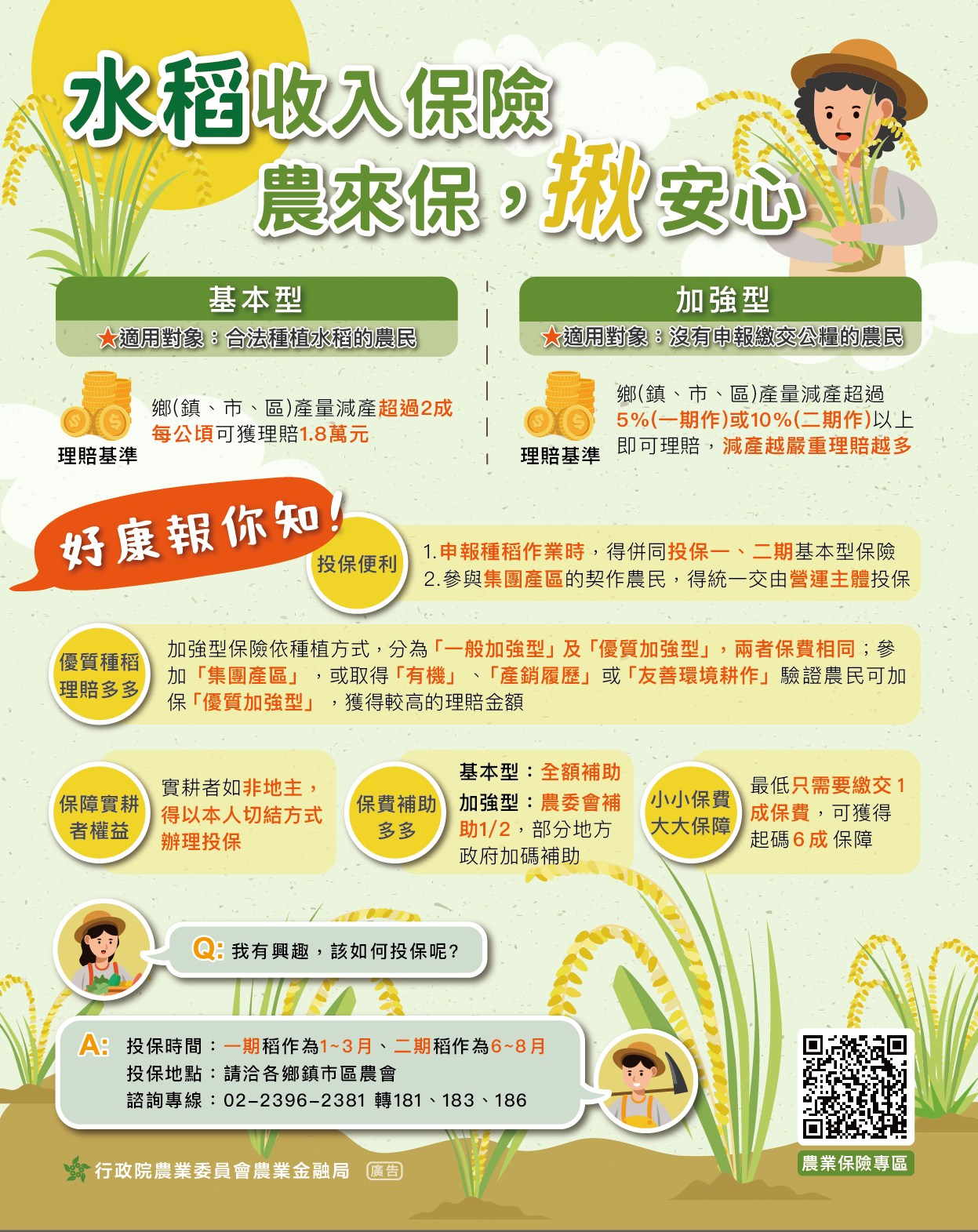 【保險部公告】112年水稻收入保險開始受理投保