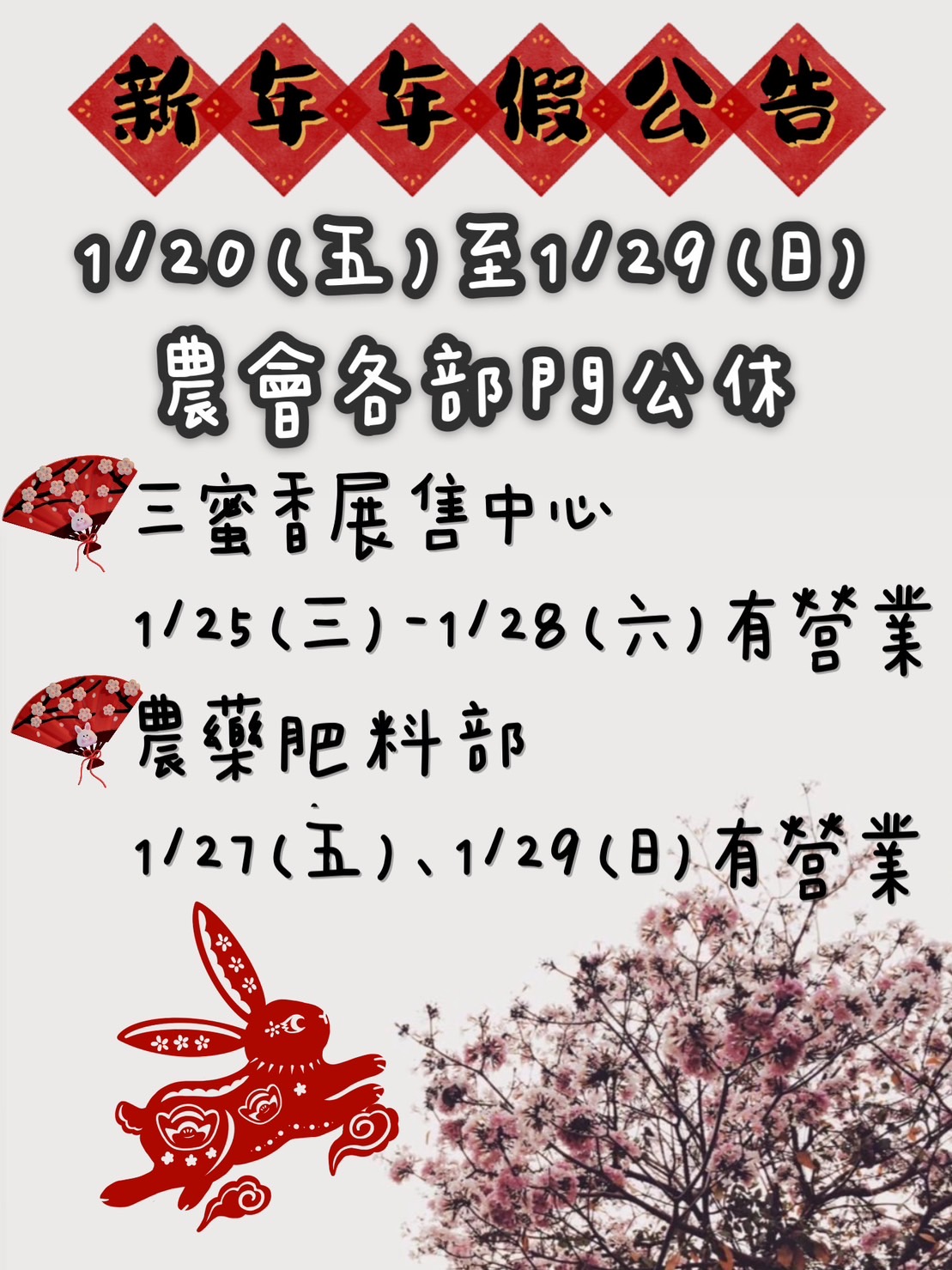 【 新 年 連 假 公 告 】
