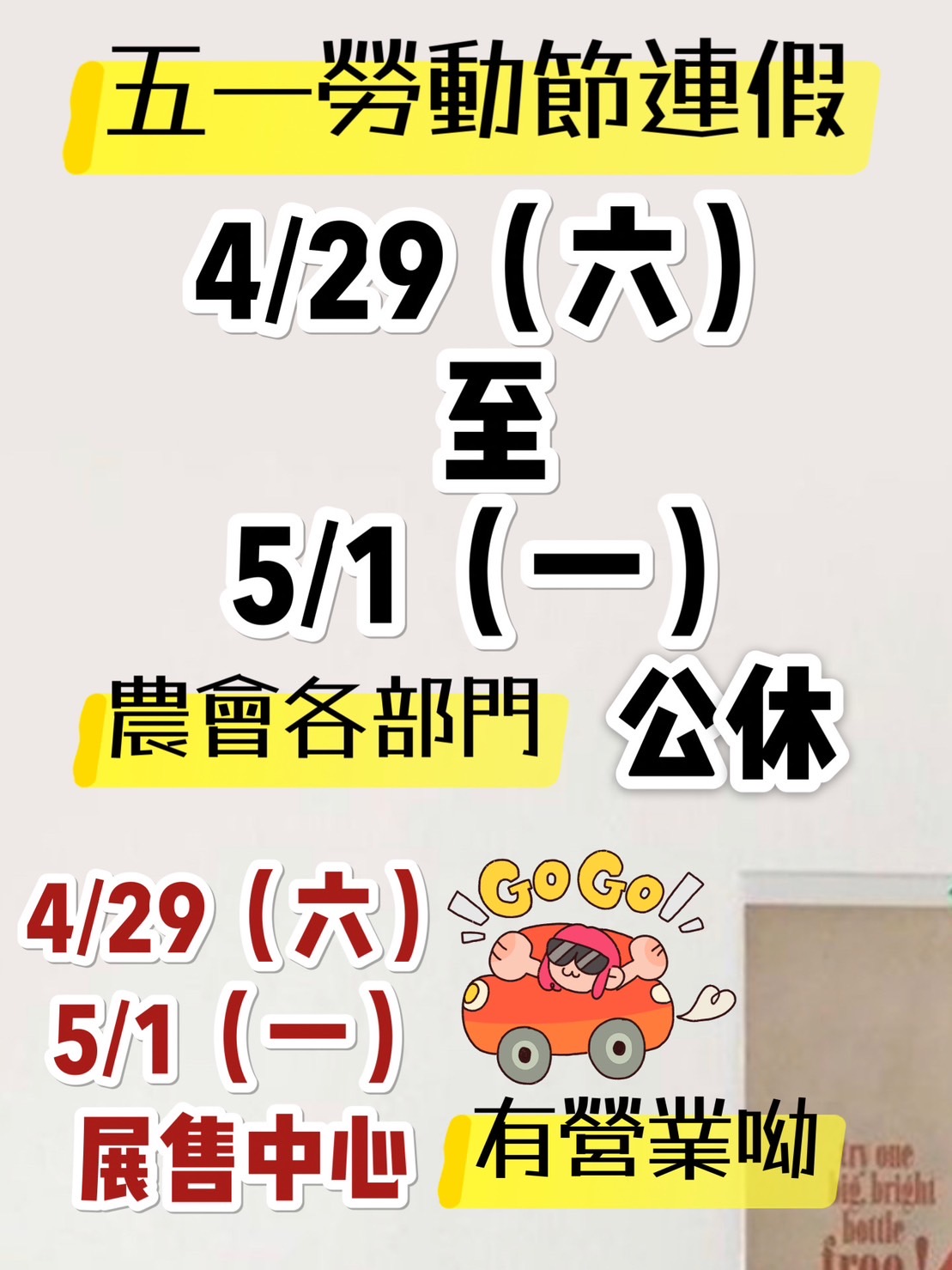 ◾️公告 - 4/29 - 5/1 五一勞動節連假公休◾️
