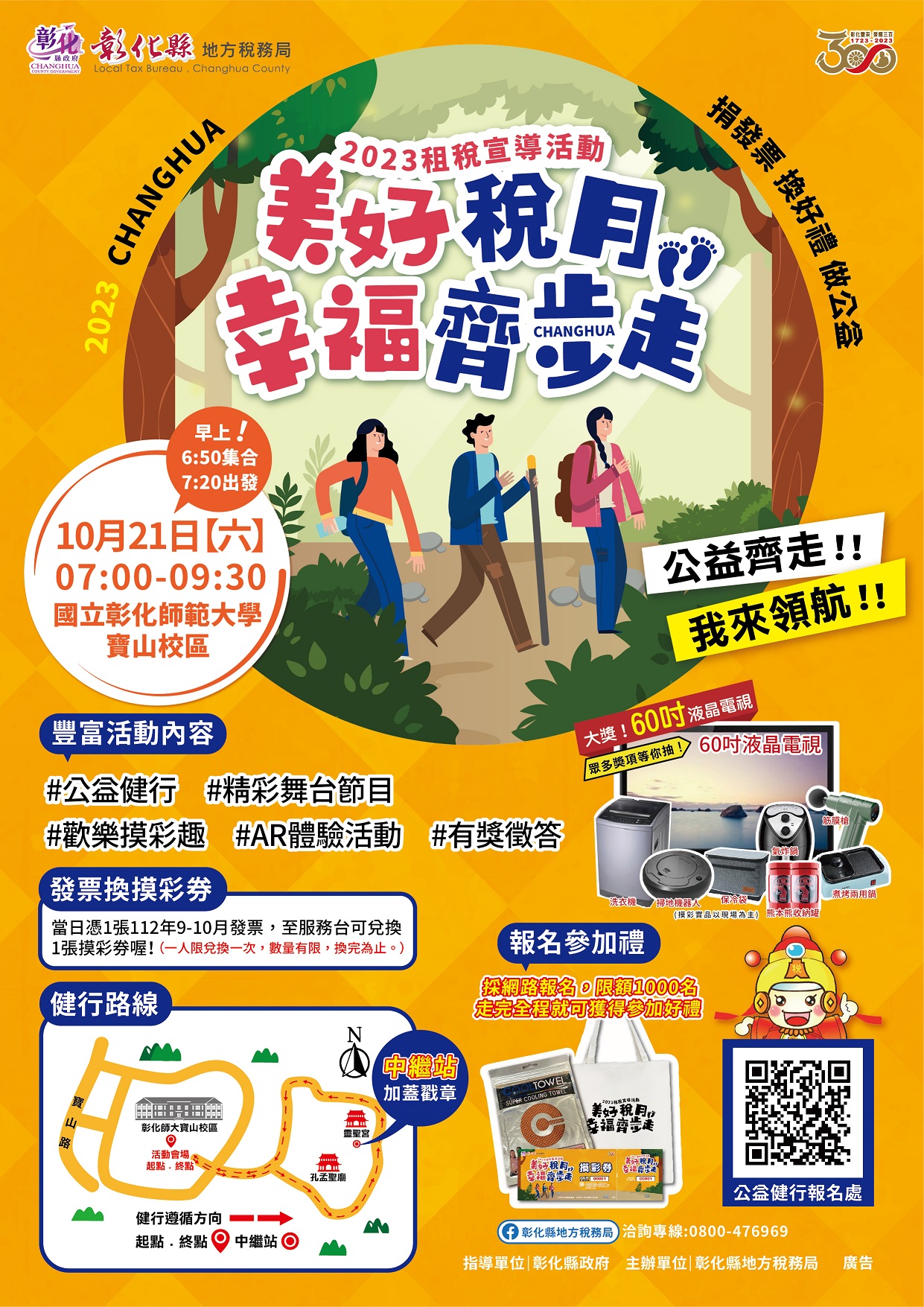 慶祝彰化縣建縣300年及推廣各項租稅常識,彰化縣地方稅務局舉辦「美好稅月 幸福齊步走」租稅健行活動