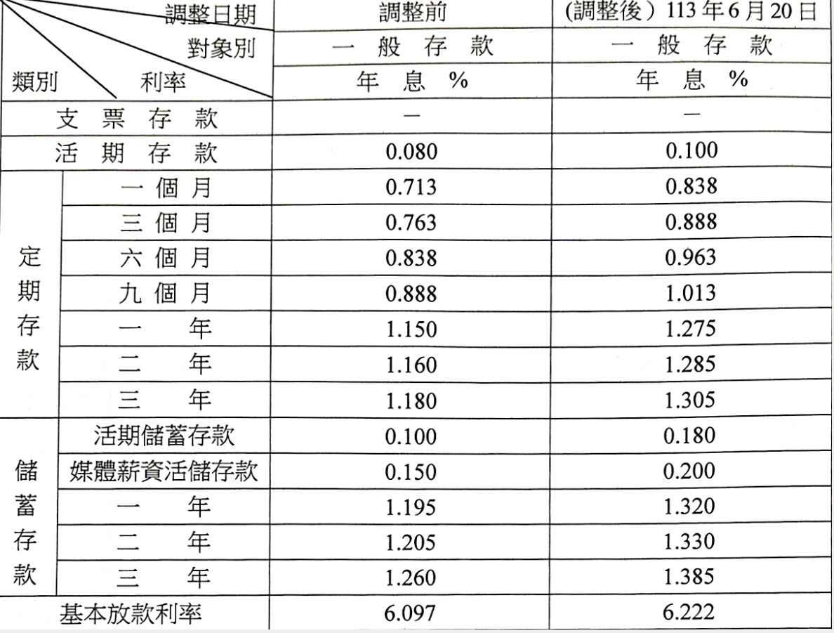 埔心鄉農會信用部存款利率及放款利率公告